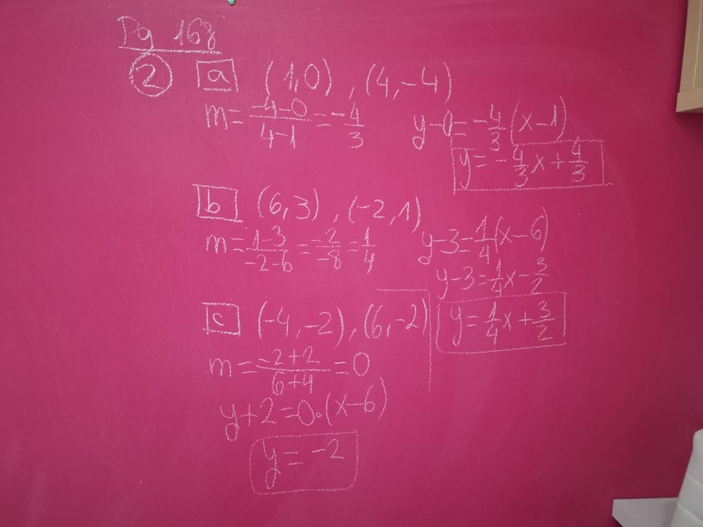 Clase virtual 15 de mayo (viernes) Marivi Contreras Martínez 15 mayo, 2020 Sin comentarios Corrección de las actividades: Fotocopia: 29, 30 Pág 168: 1abc, 2 Explicación: Repaso: Finding the equation of a straight line 4. Studying two linear functions together 4a. Problems