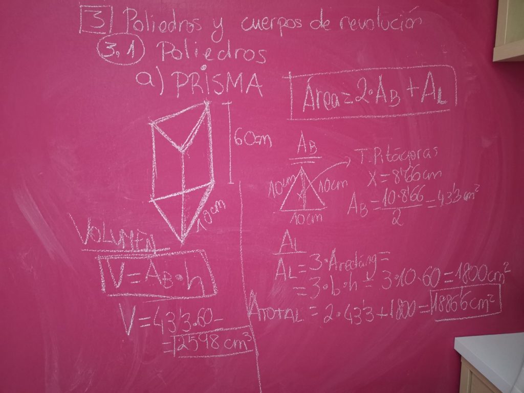 Clase virtual 15 de mayo (viernes) Marivi Contreras Martínez 15 mayo, 2020 Sin comentarios Corrección de las siguientes actividades: Explicación: Repaso: área y perímetro de figuras planas 3. Poliedros y cuerpos de revolución 3.1 Poliedros Prisma. Área y volumen.