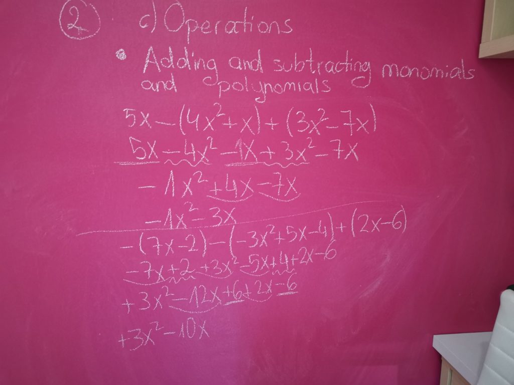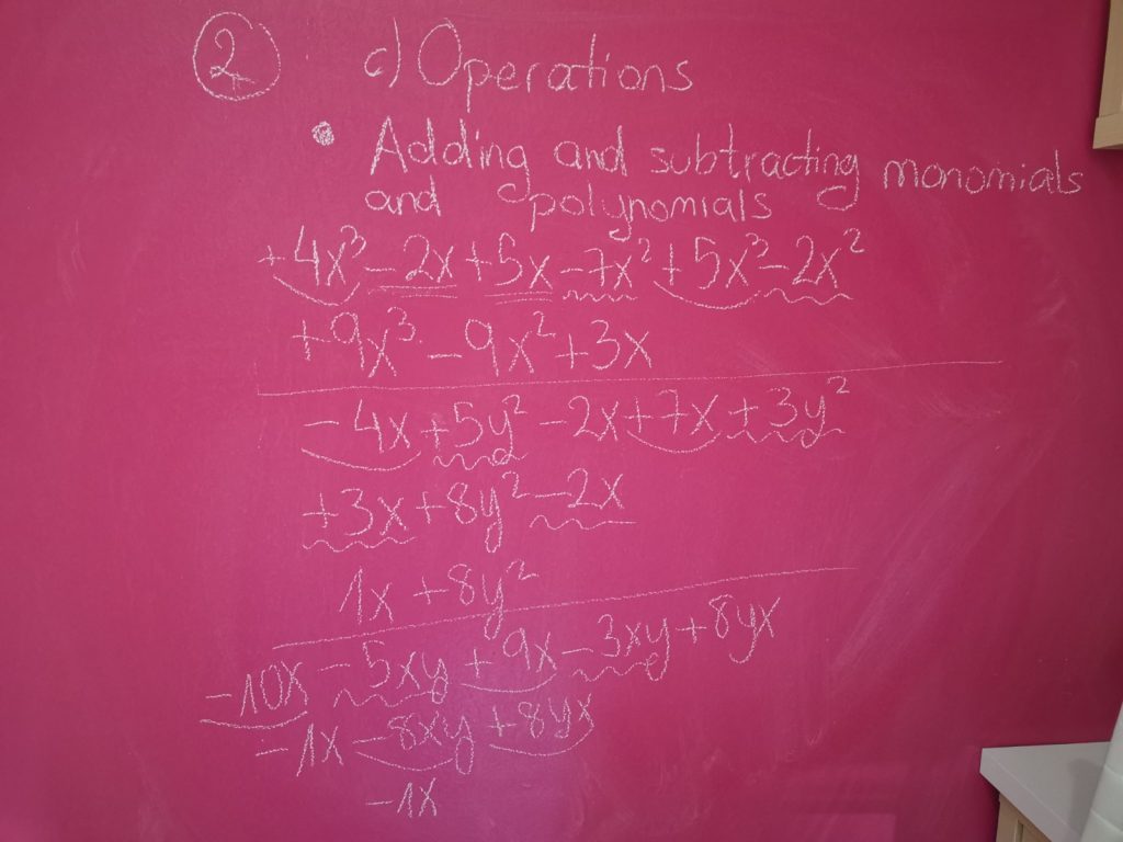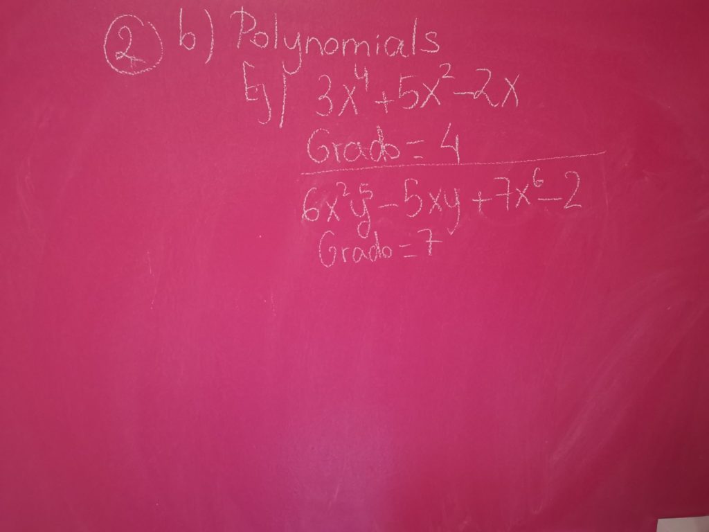 Clase virtual 23 abril (jueves) Marivi Contreras Martínez 23 abril, 2020 Sin comentarios Explicación: 2b. Polynomials 2c. Operations Adding and subtracting monomials and polynomials. Corrección: Pág 173: 1, 2, 3 Fotocopia: 2