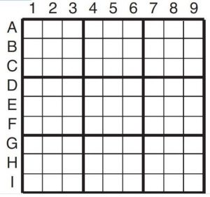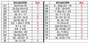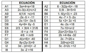 Los alumnos deben rellenar algunas de las casillas de este tablero de SUDOKU completamente vacío, resolviendo las ecuaciones que aparecen en una tabla. La solución de estas ecuaciones se debe colocar en las casillas que se indican.